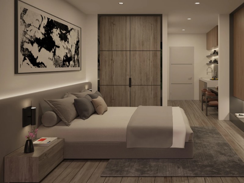 Las amenidades del edificio son impresionantes e incluyen un espacio de biohacking, un vestíbulo de techo alto, restaurante y bar con terraza exterior, terraza y piscina en la azotea, equipo de gimnasio interactivo y sala de conferencias. El servicio a los inquilinos es de primera clase, con opciones de check-in anticipado/check-out tardío